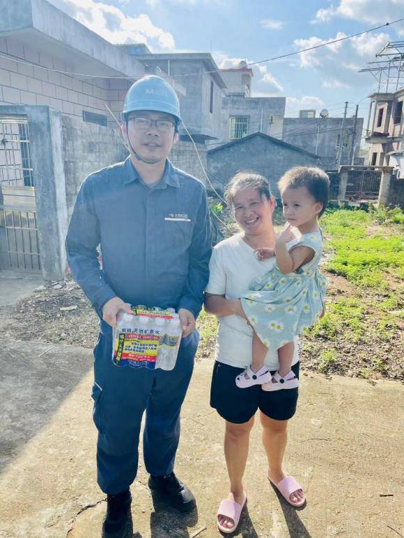 “這么熱的天你們還一直暴曬在太陽底下忙著幫我們通電,你們要多喝水防止中暑,要多吃點東西,不要餓著肚子干活”9月18日下午,在海南省澄邁縣金馬大道新村仔農場的搶修現場,熱心的村民大姐左手抱娃右手提著礦泉水和八寶粥送到搶修人員的手中,搶修隊員跟大姐握手表示感謝。這一幕溫馨的場景,是公司搶修隊伍與當地群眾的“雙向奔赴”,彰顯了電力施工企業(yè)與人民之間深厚的魚水情誼。在困難與挑戰(zhàn)面前,他們攜手并肩,共同譜寫了一曲動人的贊歌。