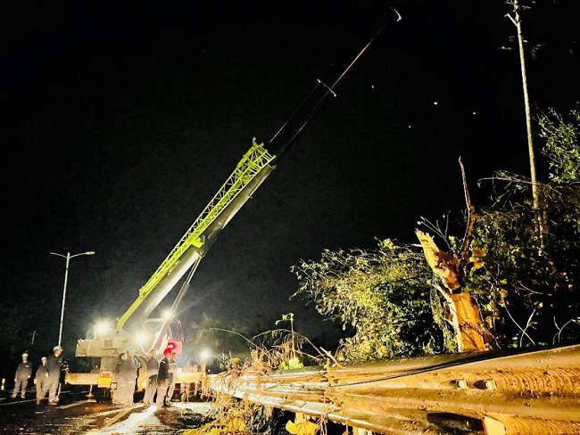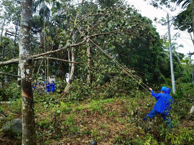 到達海南后,揭陽明利綜合能源發(fā)展有限公司支援海南抗災搶險隊在澄邁縣緊鑼密鼓開展搶修復電工作。澄邁地貌相對平整,但林區(qū)覆蓋率較高,橡膠林香蕉園廣泛分布,臺風摩羯過境后,林區(qū)樹木倒塌壓垮電線,線路損壞嚴重。為打通線路搶修通道,加快復電進度,公司搶險隊伍一邊組織大型施工機械快速重新組立電桿,一邊組織人員及時消缺搶修,力爭以最快速度恢復線路正常供電。
