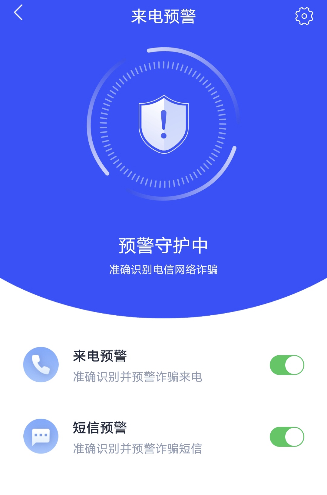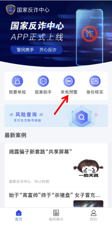 3、完成身份認證和人臉識別后,點擊頁面上的來電預警,即可開啟全方位的詐騙預警。